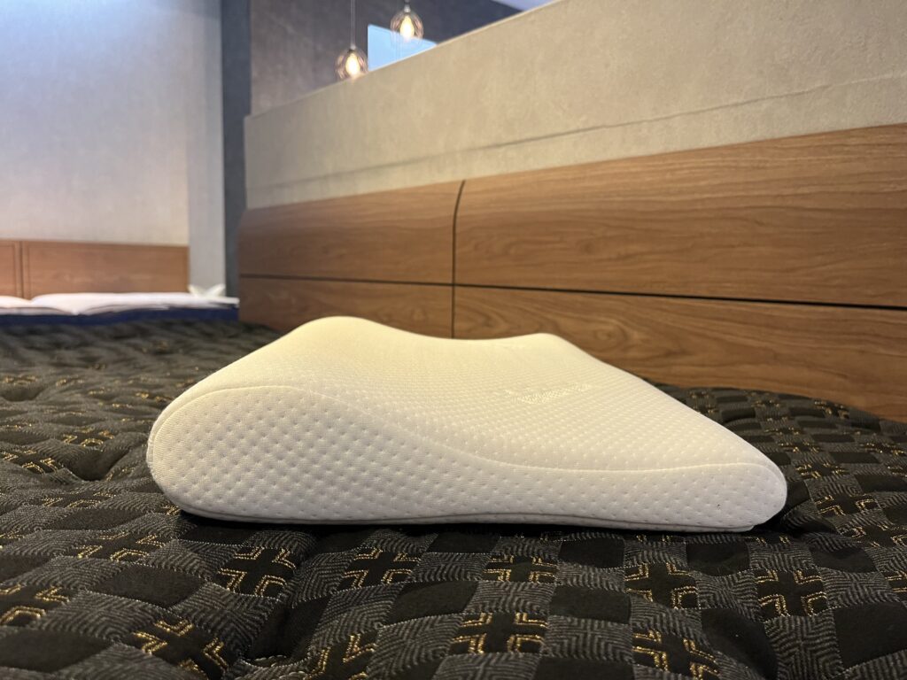 私は、女性向けのSサイズか一番低いXSサイズで迷ったのですが、仰向けが多い点と使っているマットレスがやや柔らかめという点で、一番低いXSサイズにしました。一番低いXSサイズでも、首のフィット感がしっかり感じられました。