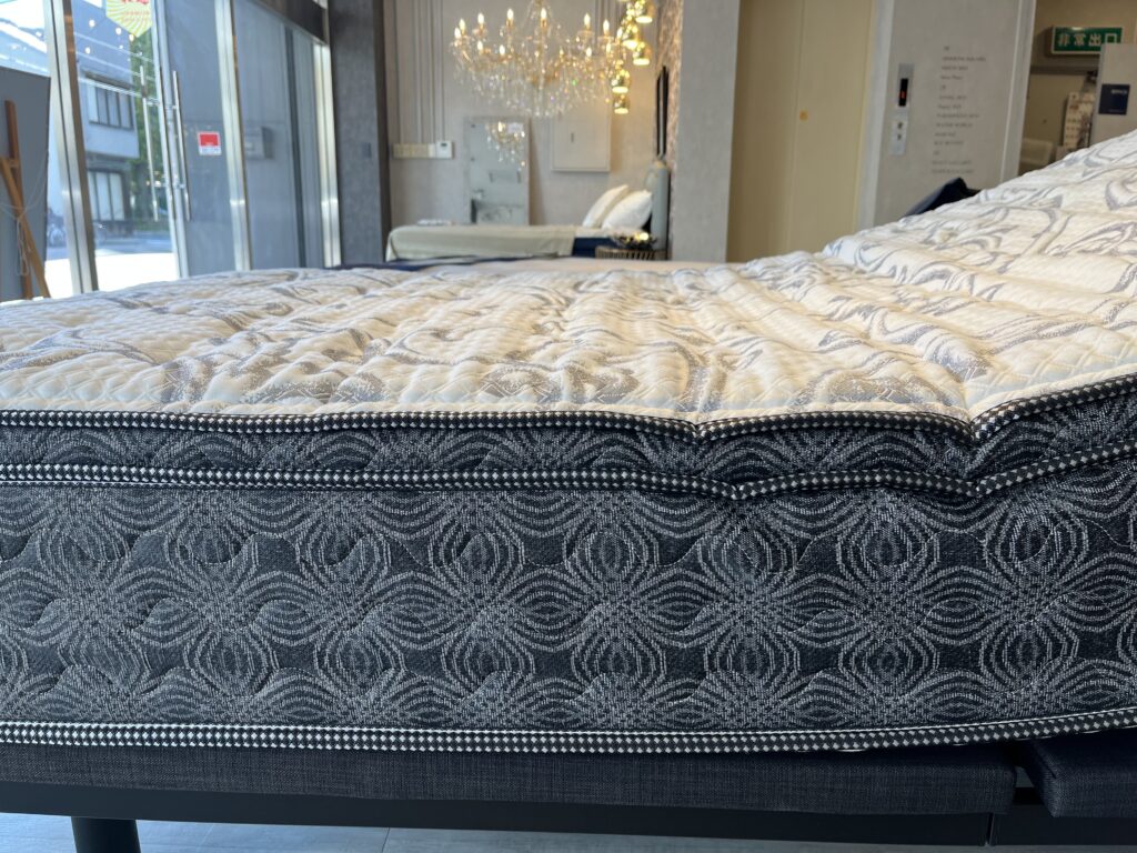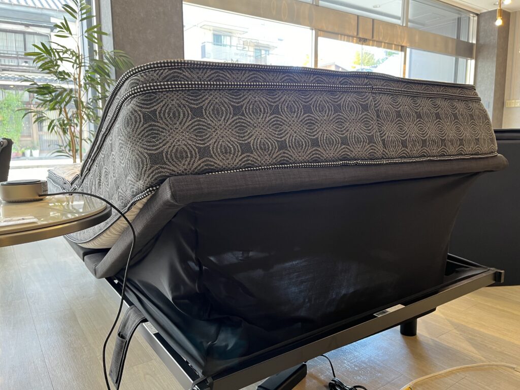 電動ベッドとは思えない、しっかりとした厚みのマットレス。長い時間ベッドの上で過ごしても、しっかりとコイルが身体を支え、バネあたりを感じにくい構造です☆