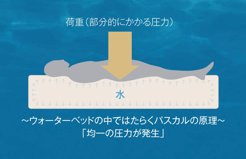 「閉じ込められた液体の一部に加えられた圧力は、全体に均等に伝わる」という“パスカルの原理”により、重い腰の部分が沈み込むこともなく、背骨は自然なカーブを描き、人体を凸凹に保ったまま各部を同じ力で支えることができます☆