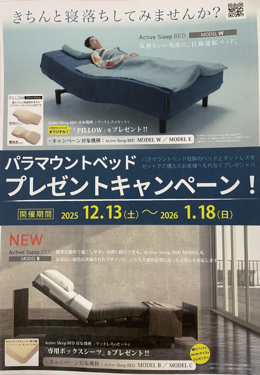 当店で人気の電動ベッドメーカー「パラマウントベッド」より毎回お客様に喜んでいただける嬉しいキャンペーンが帰ってきました♪