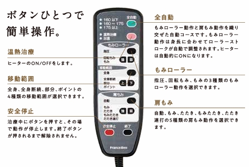 もみの強さも強くしたり、弱めたりができるので、その日の体調に合わせてマッサージが出来ます。