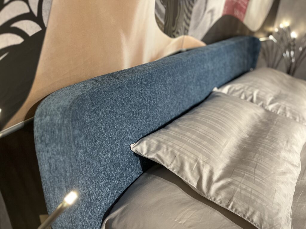 鮮やかでありながら落ち付きのあるブルーのファブリック(布地)のベッドフレームです♪