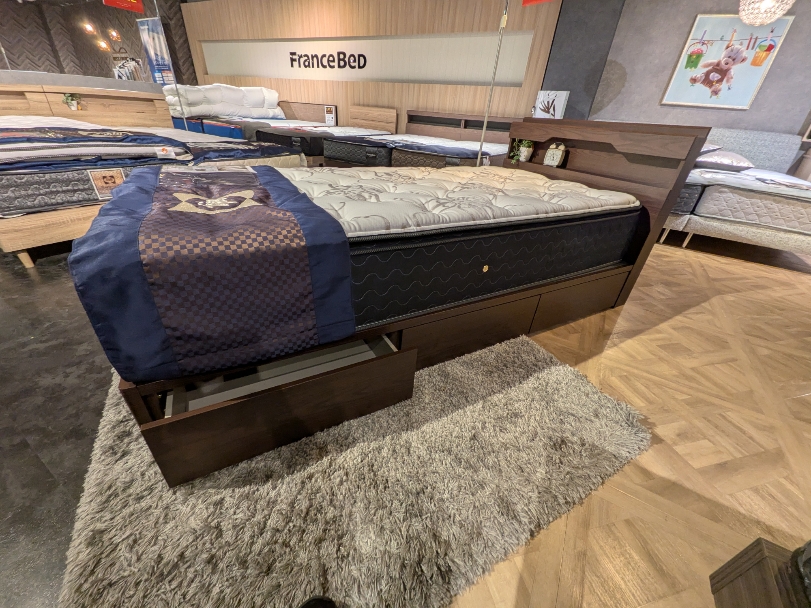 こちらのシングルベッドは、アンネルベッドの国産のマットレスを国産のドリームベッドのフレームにのせた物です!