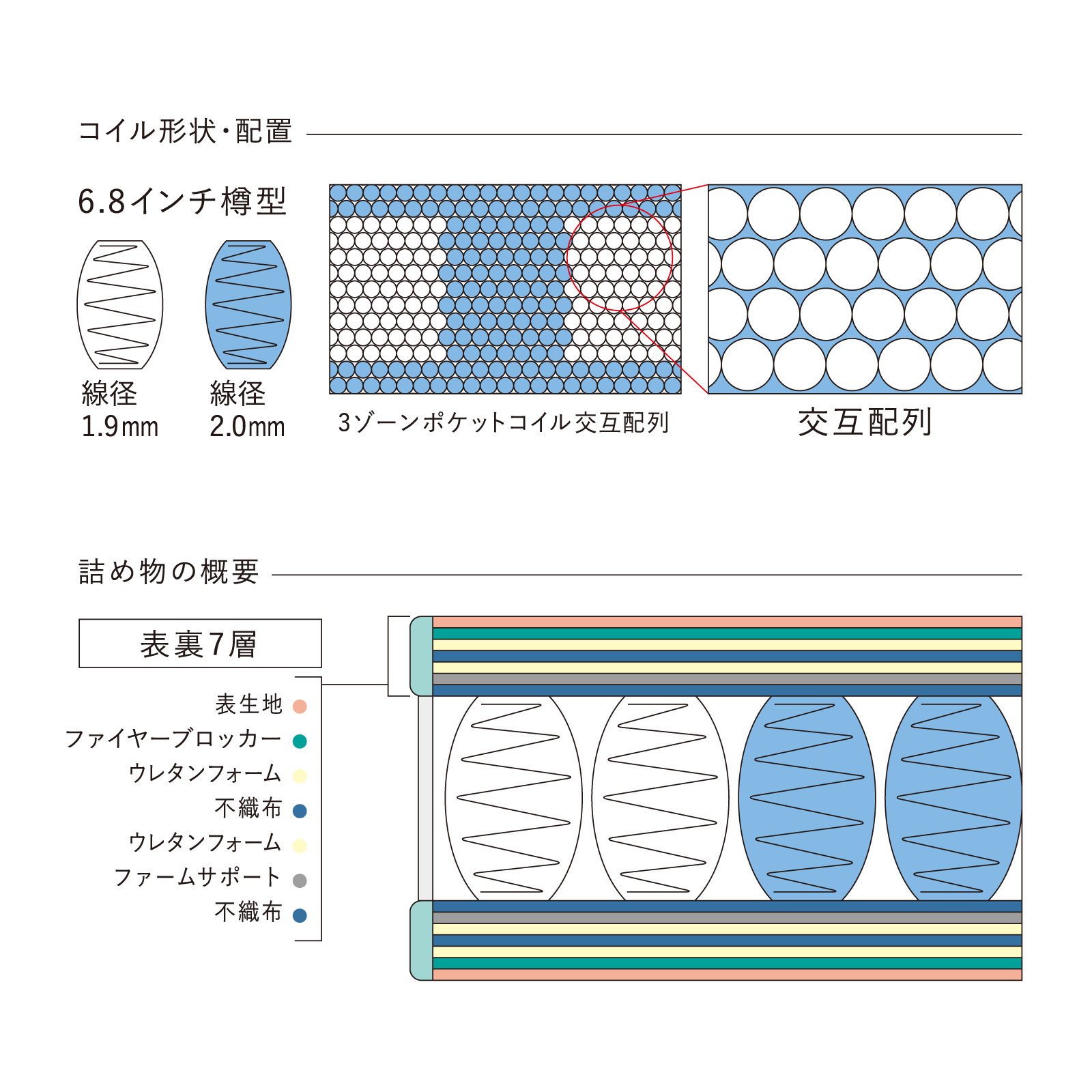 こちらのマットレスには、耐久性と品質に優れる6.8インチポケットコイルを使用しています♪