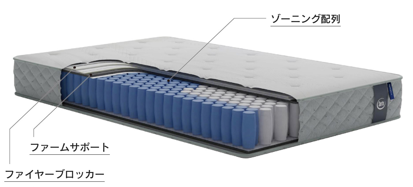 また、今回紹介している「サータサポートスイート」を含むサータスイートシリーズは、難燃素材を施した【ファイヤーブロッカー】を標準装備しています!