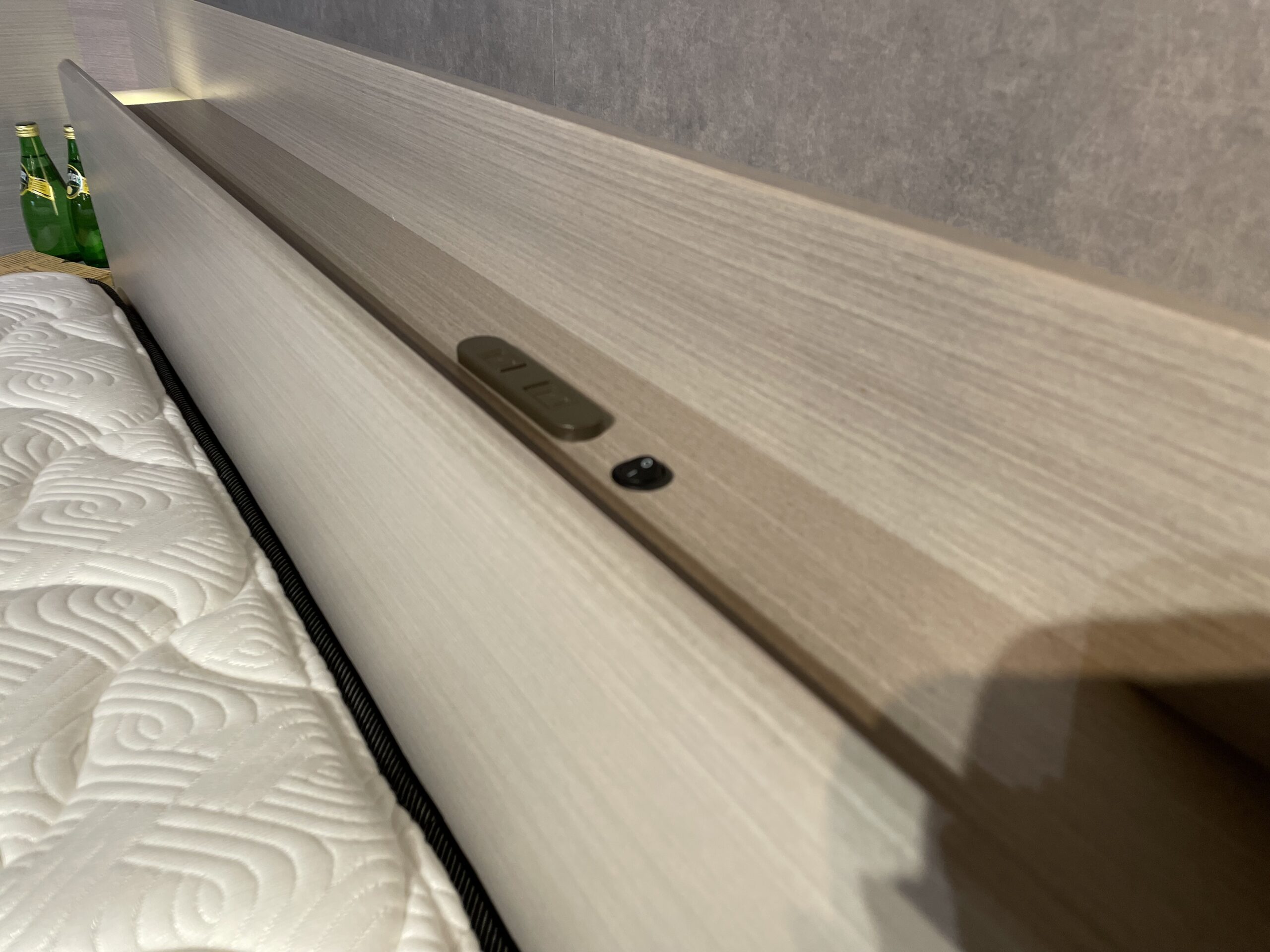 ヘッドボードには、小物が置ける棚にコンセントとライトも付いています☆