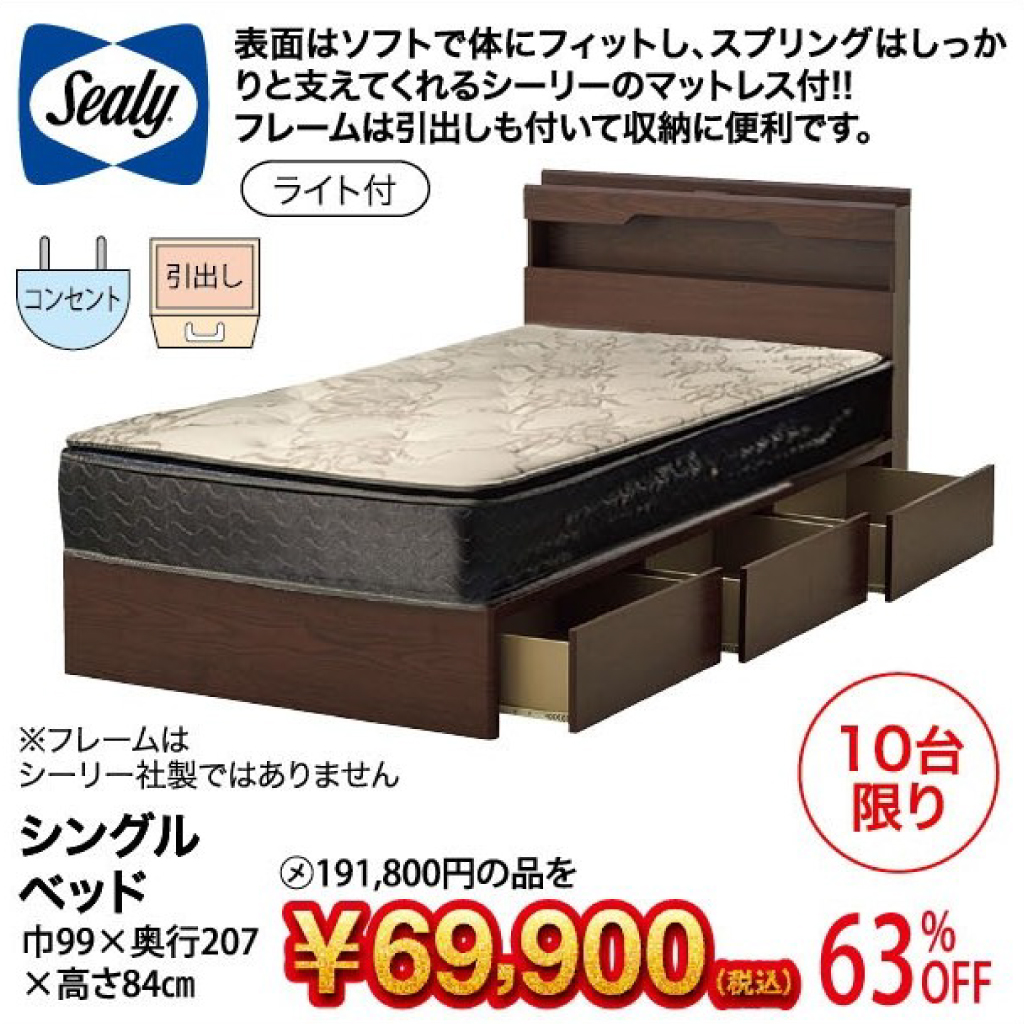 シーリー、シモンズ、サータ、テンピュール、日本ベッド、ドリームベッド、ルフ、アンネルベッド、パラマウントベッド、ウォーターベッド、フランスベッド、スターンズ&フォスター (※都合によりお取り扱いメーカーは変更されることがございます。予めご了承くださいませ )